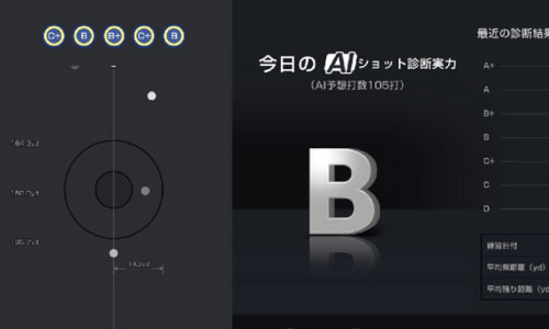 新機能として搭載されたAI診断モードでは、ショット内容を総合的に分析し、結果をレベル表示で分かりやすくフィードバックしてくれます。さらに、レベルの推移をグラフで確認できるため、成長の過程が一目で分かり、効率的な練習計画を立てることができます。